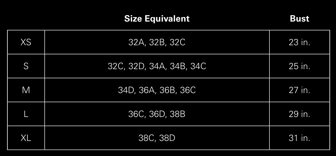 S: 32C, 32D, 34A, 34B, 34C